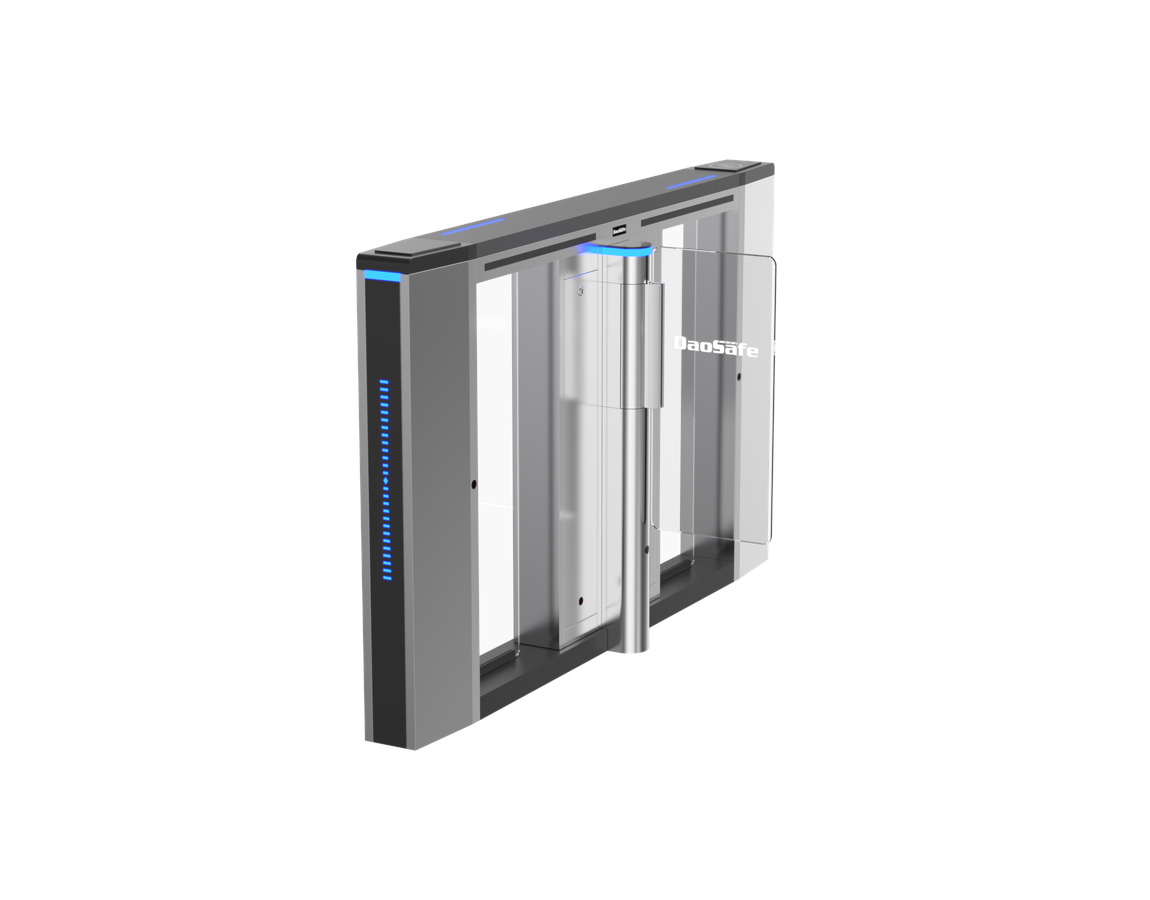 Daosafe 70_L dao_DSN venkovní levá rychlostní brána. V případě nouzového signálu zajišťuje volný průchod.