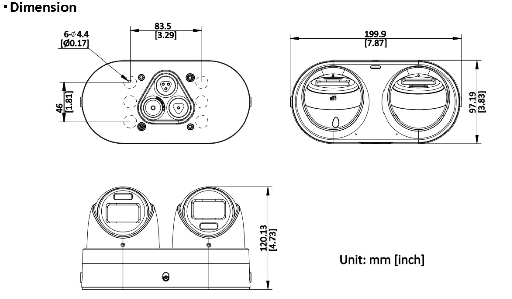 Důležité vlastnosti: 2 objektivy, které jsou na sobě nezávislé – každý lze ostřit, přibližovat (motorzoom/vzdáleně) a přidělovat mu nastavení zvlášť, 1/3" Progressive scan CMOS, rozlišení 2 x 2688 × 1520 @ 25 fps - individuálně nastavitelná šířka záběru u každého z objektivů motorické objektivy 2,8 až 4mm; dva integrované mikrofony; zorné pole - horizontální 99.3°- 80°, vertikální 52.9° - 44.1°, diagonální 120.2° - 94.0°, citlivost - Color: 0.001 Lux @ (F1.6, AGC ON), B/W: 0 Lux; přísvit do 30m, WDR: 120dB; analytické funkce, detekce: překročení čáry, narušení, zmizení objektu, zapomenutého zavazadla, rozhraní 10/100/1000 Ethernet; 1x RJ45, podporuje lokální záznam na micro SD/SDXC kartu do 512GB, napájení a spotřeba 12 VDC ± 20%, 1.42 A, max. 18 W, PoE 802.3at, stupeň krytí: IP67, IK10, NEMA 4X, provozní teploty - 40°C až +60°C, vlhkost 95%, rozměry 199.9 mm × 120.1 mm × 97.2 mm, hmotnost 1,2kg. bílé provedení
