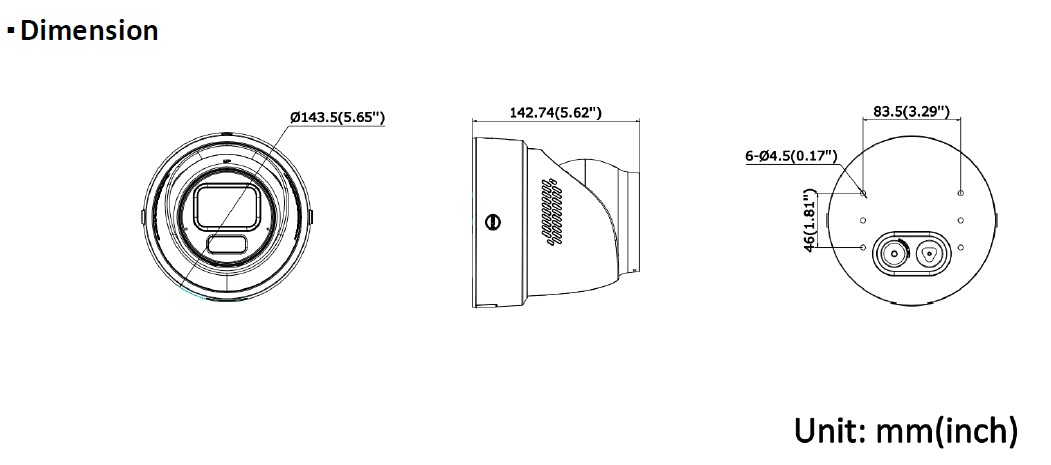 Rozměry: průměr 143.5 mm × 142.7 mm