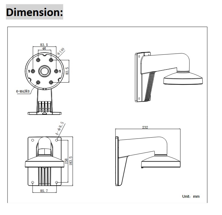 Držák na stěnu pro dome kamery. Odsazená varianta. Ochrana před přímým slunečním svitem a sněhem. Rozměry: 140 x 182 x 120mm. Pro kamery s průměrem 140mm. Černá barva, určeno pro kamery: DS-2TD1217-x/V1, DS-2CC52D9T-AVPIT3ZE, DS-2E56xxT-(A)VPIT3Z, DS-2CE56D1T-VPIR3, DS-2DE3204W-DE, DS-2DE3304W-DE, DS-2CD23x6G2- I,S,U/S,L
