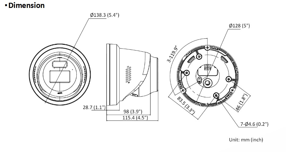 3-axiální nastavení, světelná citlivost: 0.001 lux, motorzoom 2,8-4mm, AcuSense 3.generace, Motion detection 2.0, ochrana perimetru(Line crossing, intrusion, region entrance, region exiting), rozlišení 4Mpx, integrovaný mikrofon a reproduktor, stroboskopické alarmové světlo a alarmová hláška z reproduktoru kamery, alarm IN/OUT 1/1, audio IN/OUT 1/1, triple STREAM - tři nezávislé streamy, napájení: 12 VDC, 1 A, max. 16W, PoE: IEEE 802.3af, Class 3, max. 18W, slot na micro SD kartu(max 512GB), antikorozní úprava NEMA 4X, IP67, rozměry: O 138.3 mm × 115.4 mm , hmotnost 780g, barva bílá.