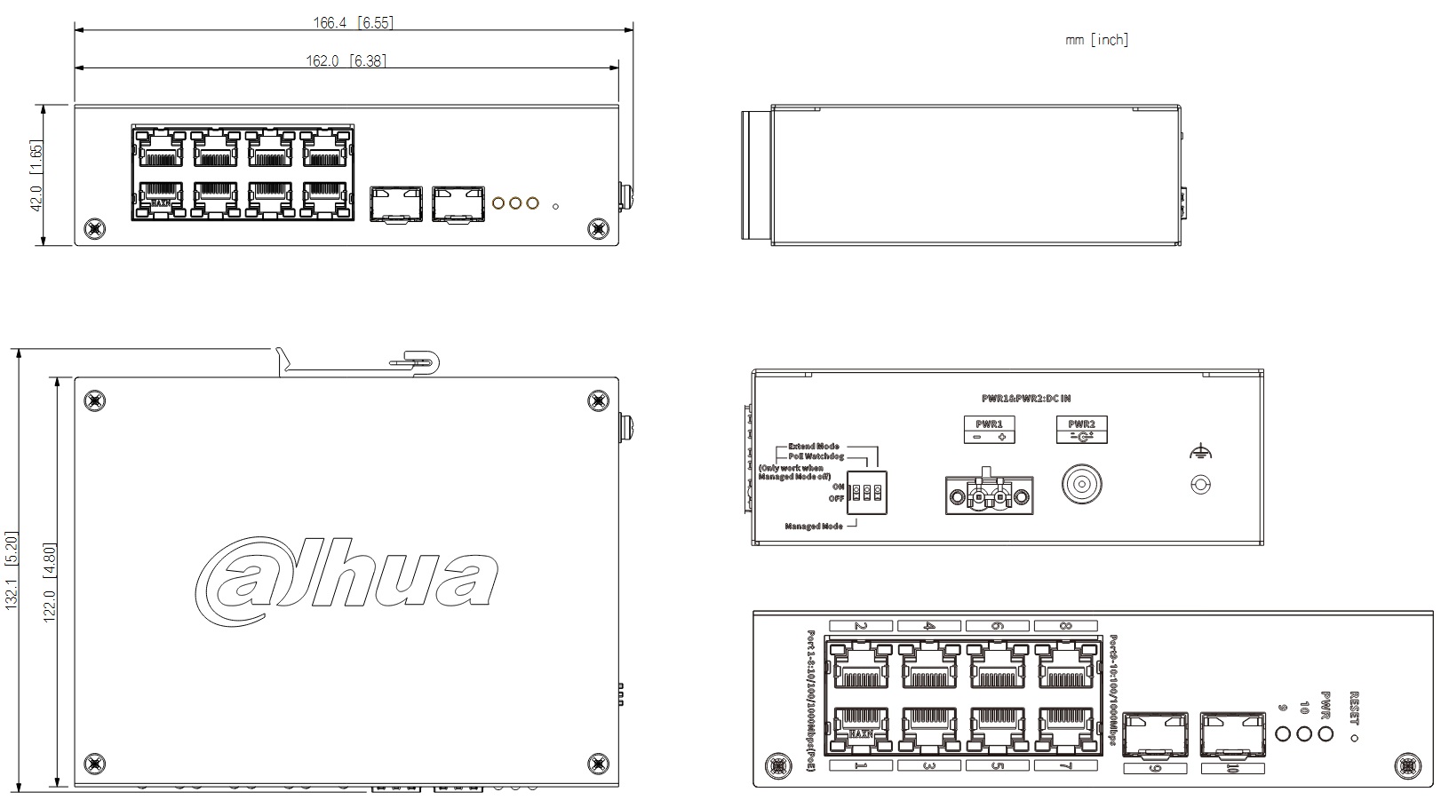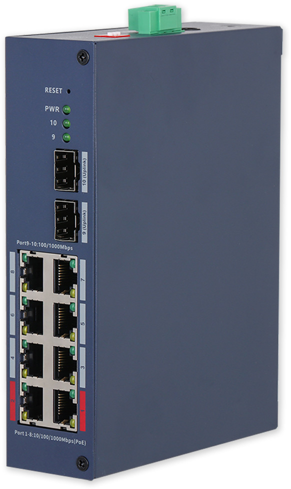 Popis portů: 8 x PoE 10/100/1000 Mbps, 2 x SFP 100/1000 Mbps uplink