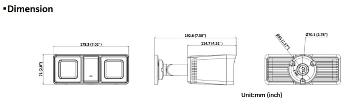 venkovní bullet Turbo HD kamera, 2Mpx rozlišení(1920 × 1080 při 25 sn/s), digitální WDR, objektiv 2.8 mm, horizontální úhel záběru 101°, duální hybridní přísvit IR 60m / LED 60 m, technologie 4v1(možnost přepnutí mezi TVI/AHD/CVI/CVBS), mikrofon, IP67, rozměry: 192.6 × 178.3 × 71 mm, barva bílá.