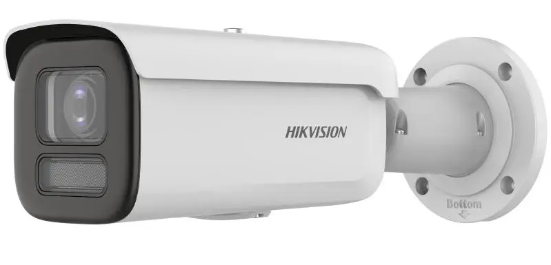 IP bullet kamera,2MPx rozlišení(1920 × 1080 při 25 sn/s), WDR 120dB, motorický objektiv 2.8-12 mm, horizontální úhel záběru 111,5-33,4°, AcuSense, duální hybridní přísvit IR 60m / LED 60 m, duální mikrofon, IP67, rozměry: 298 mm × 97.9 mm × 95.7 mm, bílé provedení
