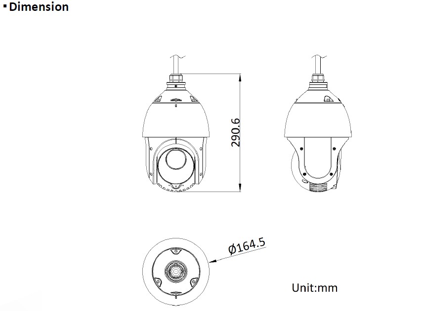 4MPx PTZ Dome kamera 4v1, Důležité vlastnosti:1/2,8" Progressive Scan CMOS čip s maximálním rozlišením 2560 × 1440, objektiv se záběrem 55° -2,4°, světelná citlivost 0,005 lux, ZOOM 25x optický; 16x digitální (f1,6-3,5mm), WDR - 120dB, IR přísvit až do 100m, video výstup: přepínatelný TVI/AHD/CVI/CVBS, napájení 12VDC/20W, krytí IP66 + ochrana před bleskem, rozměry: průměr 164.5 × 290.6 mm.