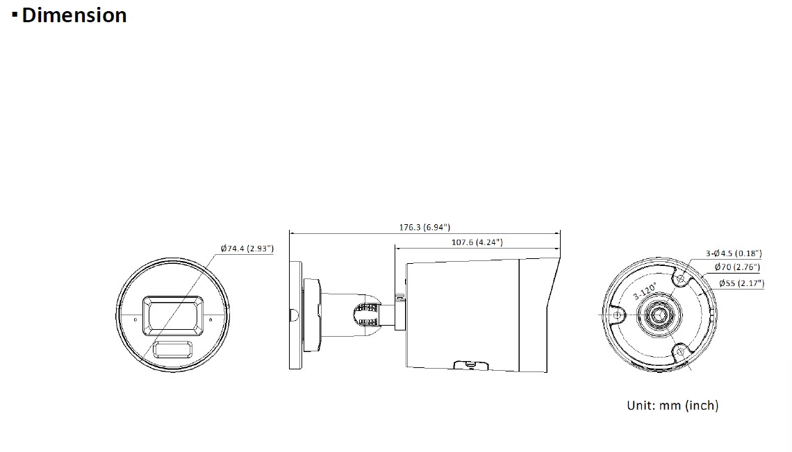 Rozměry: průěr 74.4 mm × 176.3 mm