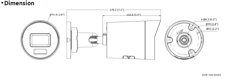Kamera s funkcí ColorVu 3.0 a AcuSense 3.0, s rozlišením 6MPx a ohniskouvou vzdáleností objektivu 4mm Svetelná citlivost 0,0005 lux a 40m hybridní přísvit Kamera je vybavena mikrofonem, reproduktorem a stoboskopickým světlem bílé provedení