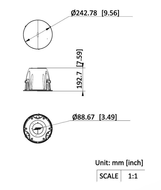 Odpor 8?, max. hlasitost 98 dB @1m, frekvenční rozsah 120 Hz – 20 kHz, citlivost 89 dB @1W/1m, celkové harmonické zkreslení (THD) méně než 1 %, bez komprese, bez podpory protokolů, bez paměti, bez audio vstupů/výstupů, bez alarmových vstupů/výstupů, svorky 100V pro připojení vstupu/výstupu, rozměry: 243 × 193mm, hmotnost 2,9 kg, barva černá.