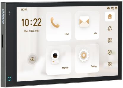 Vnitřní zobrazovací jednotka IP videotelefonu s barevným dotykovým displejem. Obousměrná audio komunikace s venkovními jednotkami VTO přes SIP protokol. Nastavení z programu ConfigTool. Možnost připojení IPC kamer z kamerového systému Dahua. Otevírání elekrického zámku. Relé vstupy/výstupy. Nástěnná montáž nebo stolní s příslušenstvím. Napájení PoE nebo 12 VDC.