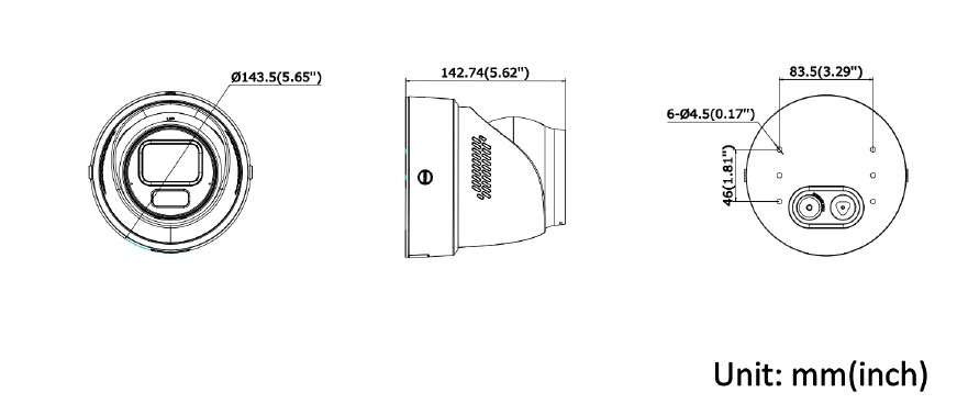 Rozměry: průměr 143.5 mm × 142.7 mm