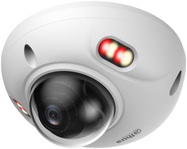 Venkovní IP minidome kamera řady WizSense 3 Series s technologií duálního přísvitu pro barevný noční obraz při detekci člověka a vozidla. Integrovaný mikrofon. Analytické funkce Smart Search, SMD 4.0, Face Detection (Full Image), AI SSA, AcuPick, IVS (Perimeter Protection). Slot pro micro SD kartu. Audio a alarm I/O. Napájení PoE nebo 12 VDC. Kov a plast.