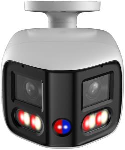 Venkovní panoramatická IP kamera řady WizSense 3 Series, duální přísvit, integrovaný duální mikrofon a reproduktor s možností obousměrné audiokomunikace. Detekce AcuPick, SMD 4.0, Face Detection (Full Image), IVS (Perimeter Protection), Smart Search. Při narušení perimetru, spustí audio vizuální zastrašení výstražnými LED (červená a modrá).
