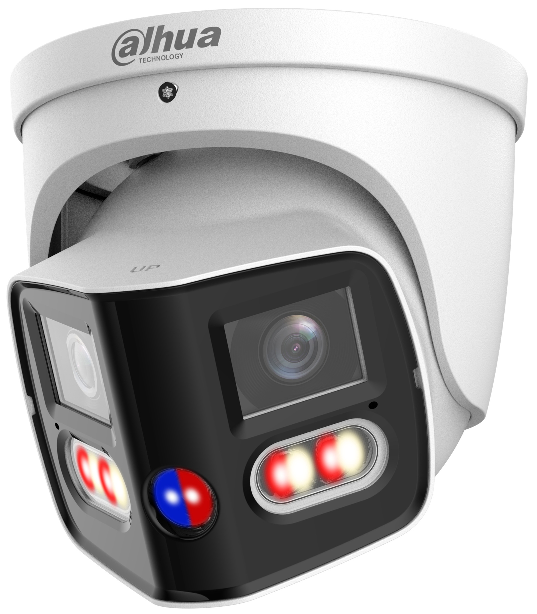 Venkovní panoramatická IP kamera řady WizSense 3 Series, duální přísvit, integrovaný duální mikrofon a reproduktor s možností obousměrné audiokomunikace. Detekce AcuPick, SMD 4.0, Face Detection (Full Image), IVS (Perimeter Protection), Smart Search. Při narušení perimetru, spustí audio vizuální zastrašení výstražnými LED (červená a modrá).