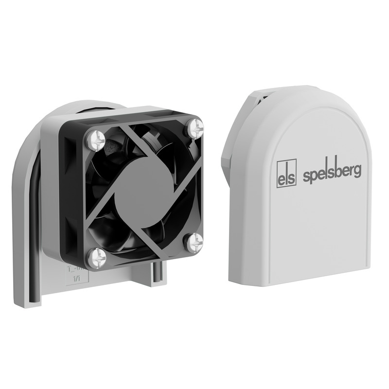 Filtrační ventilátor pro zabudování do otvorů skříněk M40, určený k odvodu tepla z průmyslových neobsazených skříní a malých rozvaděčů, třída filtru G4 podle DIN EN 779, pro tloušťky stěn od 1,25 do 4,5 mm, 24 V DC, výkonnostní třída 1, šedý.