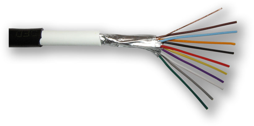 Stíněný kabel typu "drát", 10 žil pro venkovní použití, dvojitý plášť PVC + PE, průměr drátu 0,5 mm, pro slaboproudé rozvody EZS - balení má z výroby 275 m délky, značení délky na plášti kabelu.